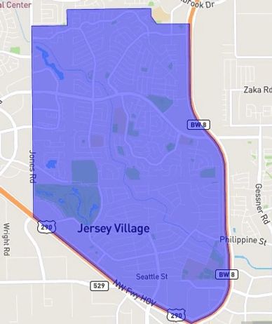 Jersey Village was a subdivision platted in 1954, and incorporated in 1956.  It is located west of Beltway 8 and on the north side of 290, east of Jones and south of Fallbrook.  Jersey Village is a small city within the boundaries of the City of Houston, much like Bellaire.  It has been able to maintain great schools and quality of life for their residents keep resale values of homes steady.  Visit the website below to learn more.